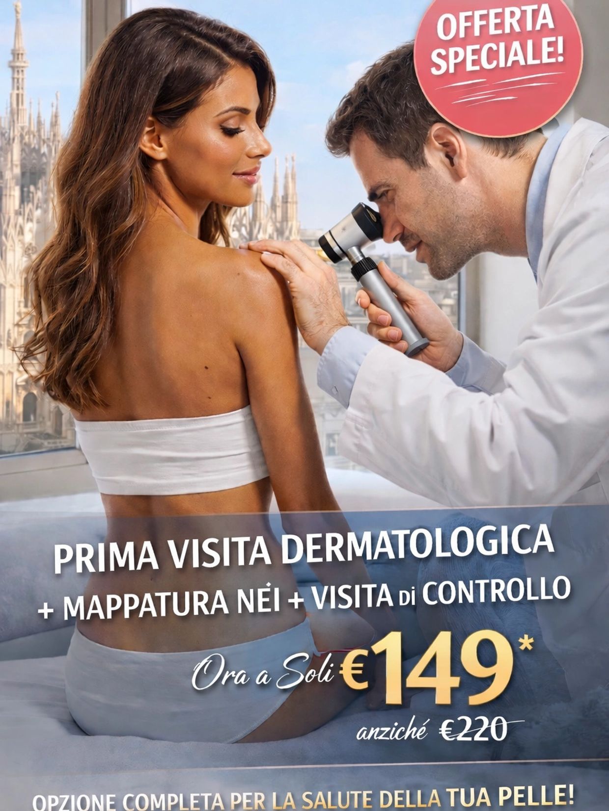 Offerta speciale: €149 invece di €220 per l’intero check-up, per la salute della tua pelle oggi e nel tempo.!